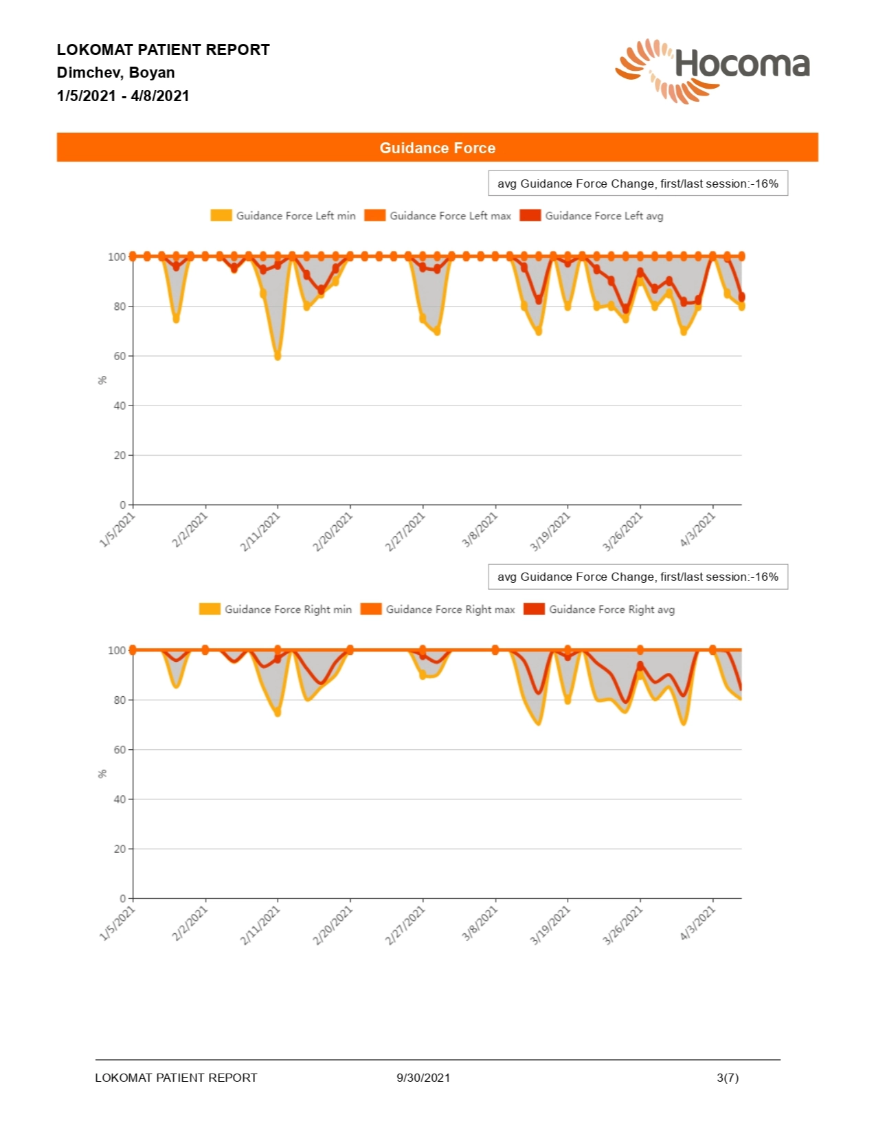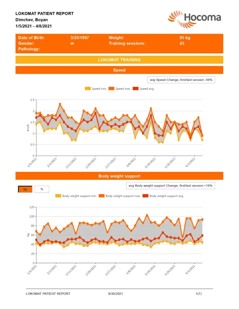 Б.Д. пристига в Центъра за роботизирана рехабилитация “Сердика” през Януари 2021г. Назначен му е рехабилитационен курс, който включва кинезитерапия по индивидуално изготвена програма и процедури с Lokomat Pro, с продължителност 12 седмици.